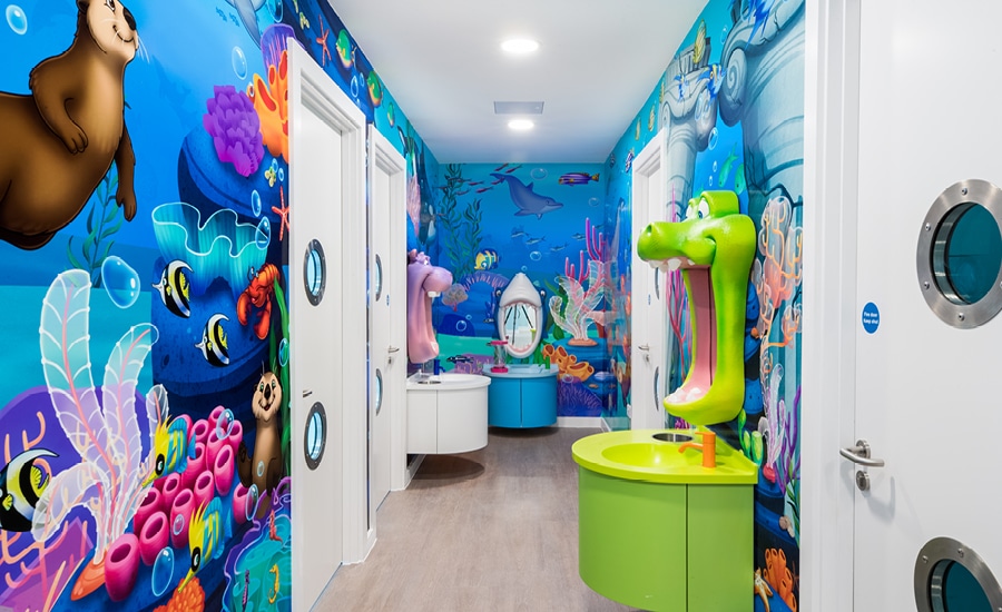 - Brushing Stations and Hallway – hippo, shark, alligator brushing mirrors, murals