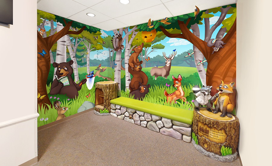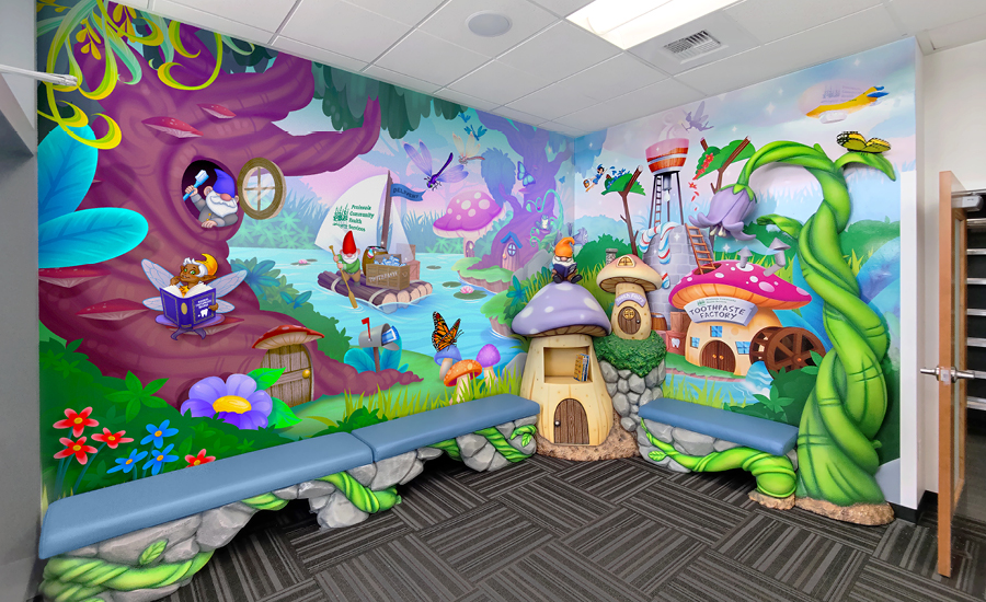 From Sheryl Wright – “As a result of the theming, marketing has definitely improved. Even if patients cannot remember the name of the clinic, they know where we are and that our clinic is the fun place for kids to come play while they are waiting for their appointment.”