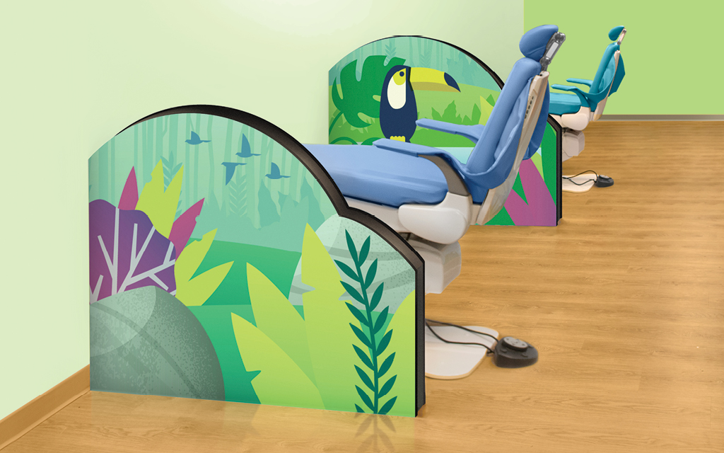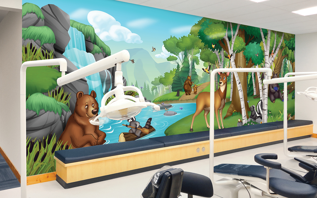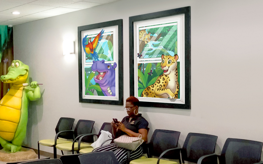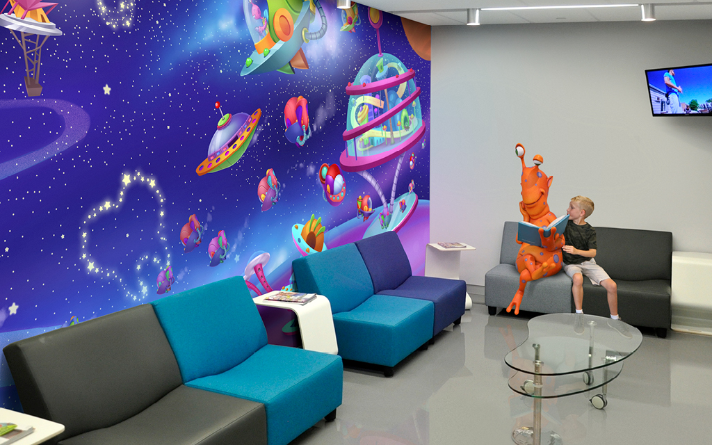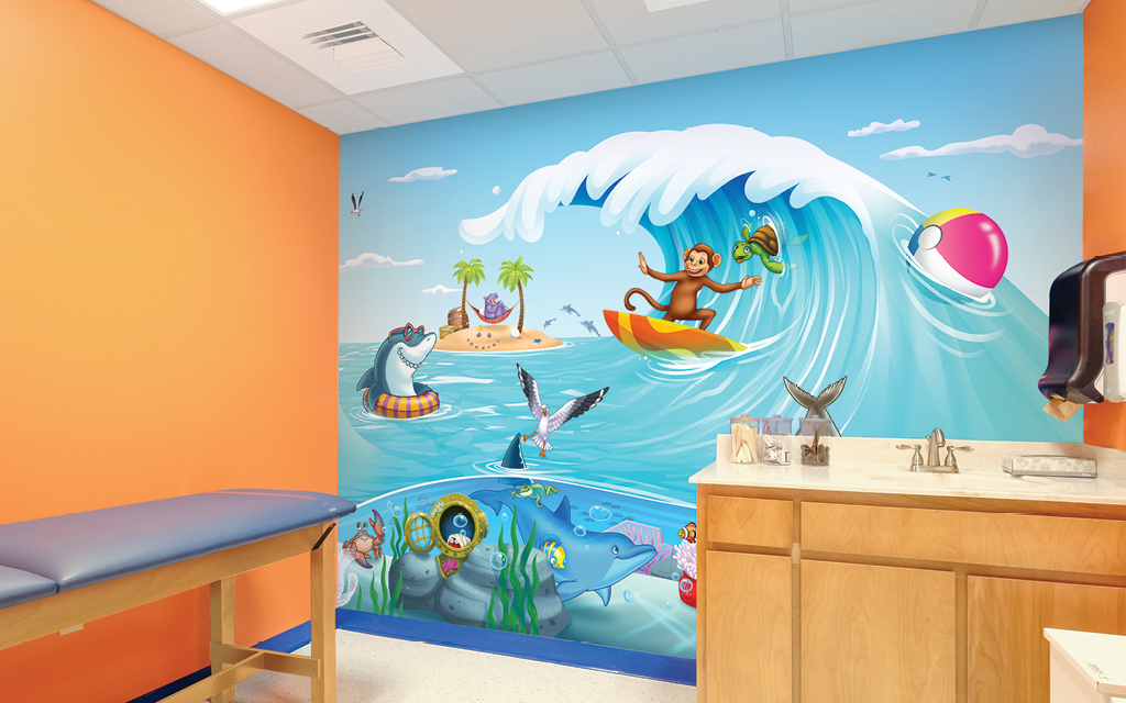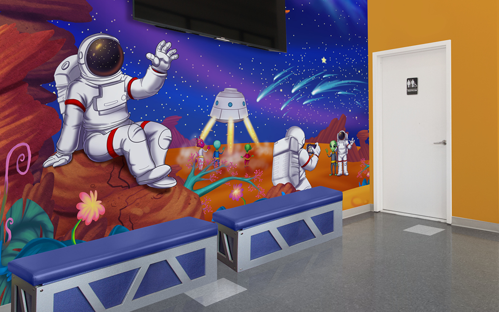Transform waiting rooms, treatment bays, and hallways into welcoming, kid-friendly spaces that help ease anxiety and enhance the patient experience, without long lead times.