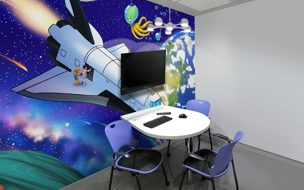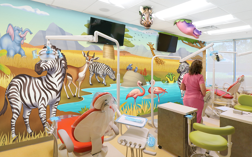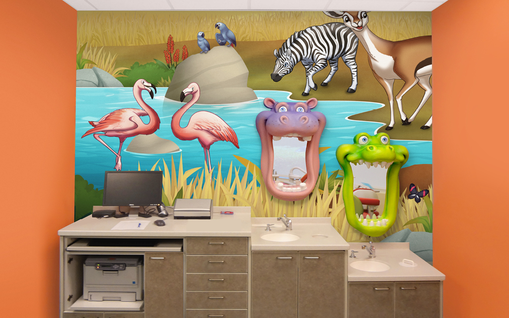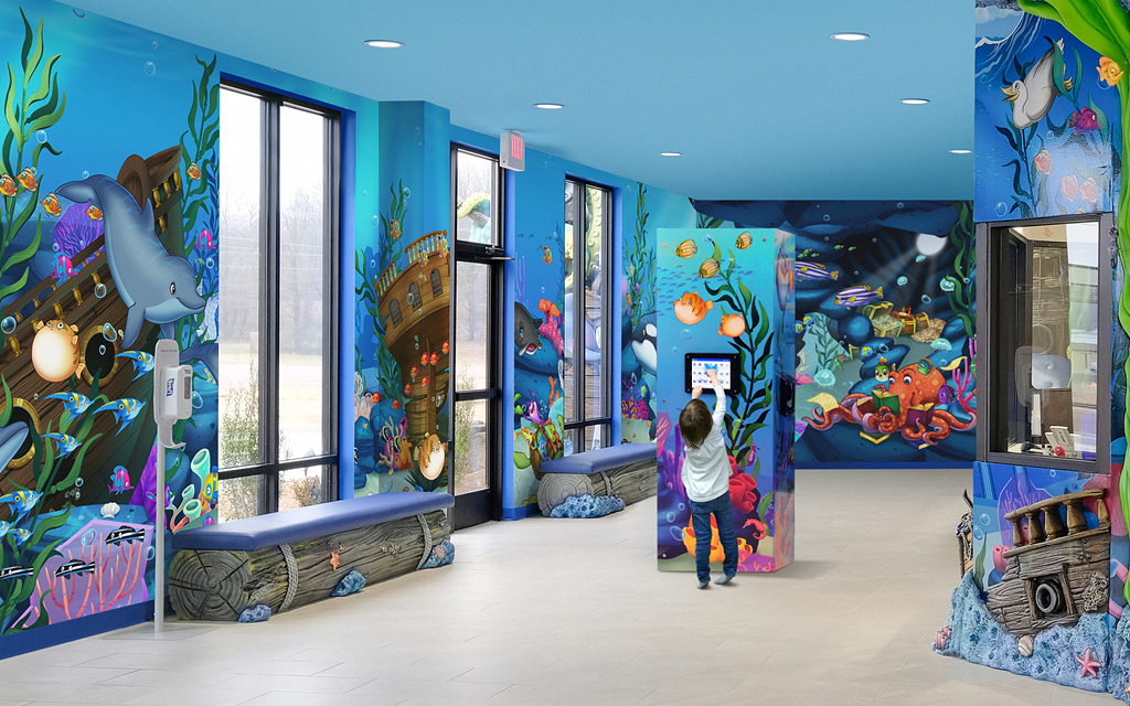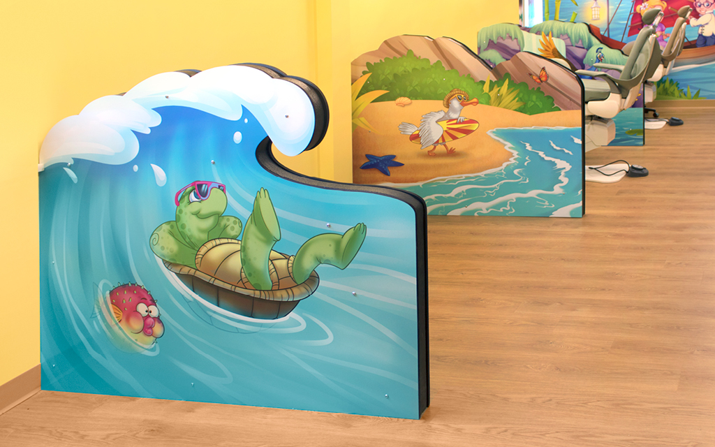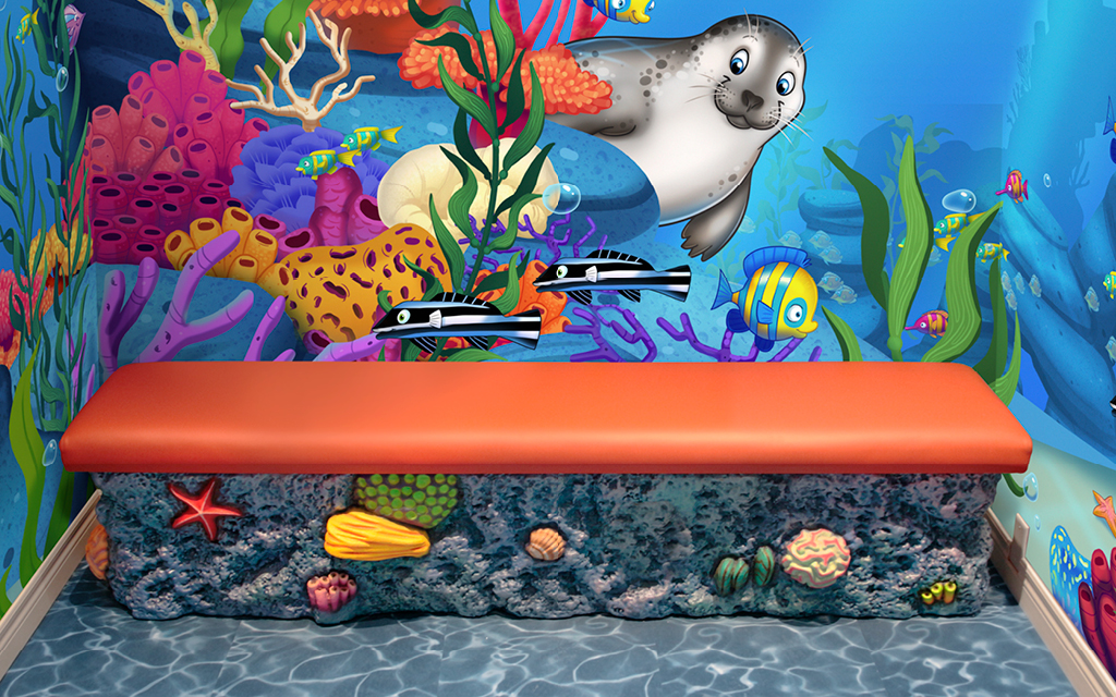 Transform waiting rooms, treatment bays, and hallways into welcoming, kid-friendly spaces that help ease anxiety and enhance the patient experience, without long lead times.