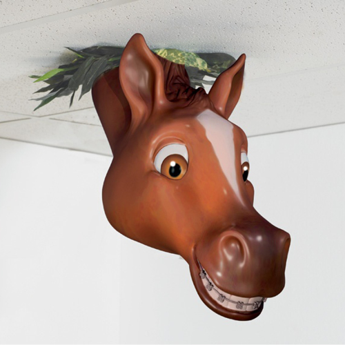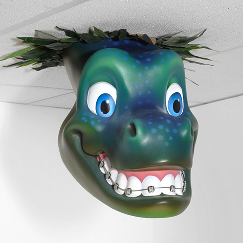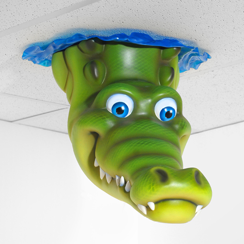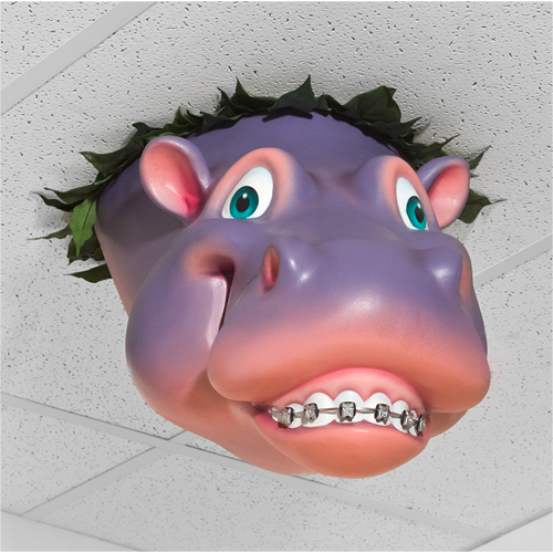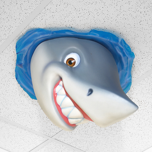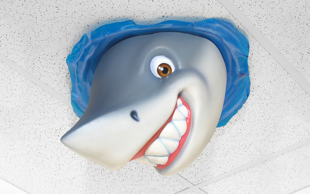 Smile Tiles are happy characters that peer down from the ceiling. Great for treatment rooms where patients will spend their time leaning back. They are lightweight characters that are easily mounted on a ceiling tile or drywall. A decorative feature of leaves or water is included around the neck of the character.