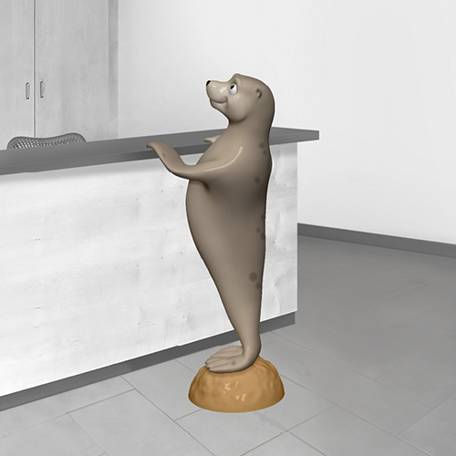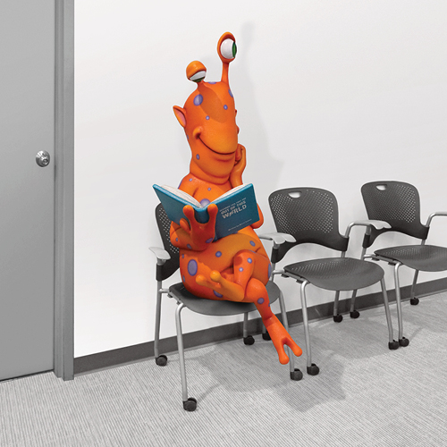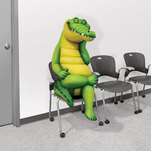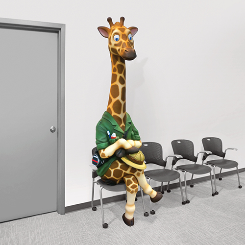 Sized to fit a standard chair. Fit your character to your existing waiting room chair or select the optional crate (18’ high) for your character to sit on.