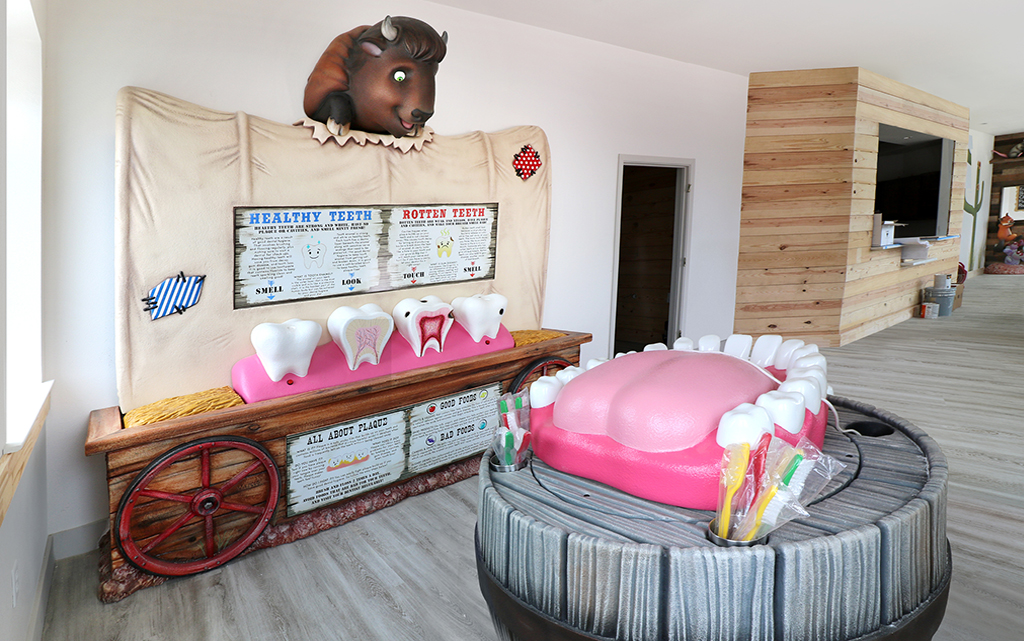 We create imaginative dental office decor that enhances your space without sacrificing functionality. Our custom-themed elements replace standard features like seating and mirrors with playful, purpose-driven designs. Blending creativity with practicality, we transform your office into a welcoming, memorable environment for kids.