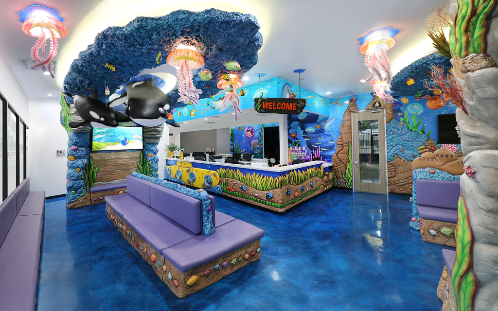 Whether it’s a treehouse waiting area with swinging monkeys or an underwater corridor with vibrant coral and dolphins, our spaces captivate young patients, creating delight for families and generating buzz in the community.