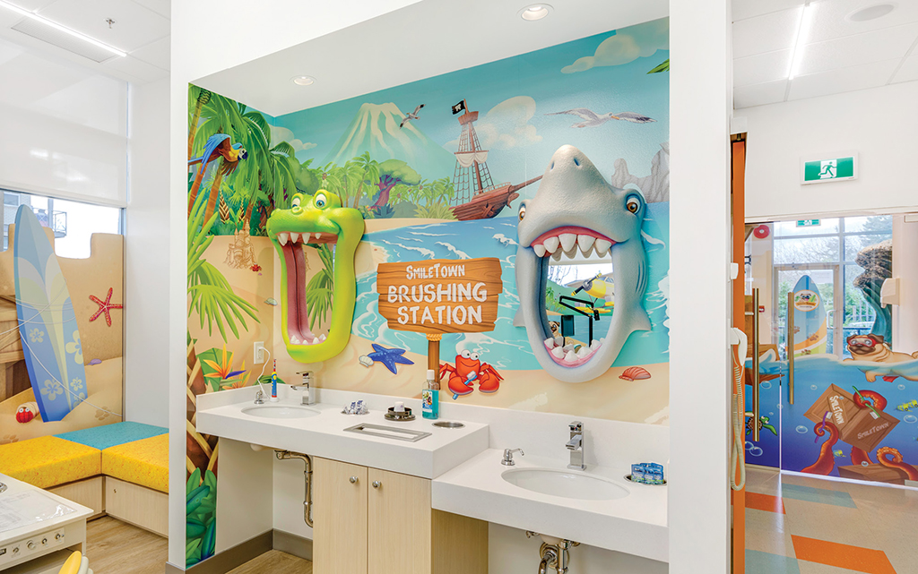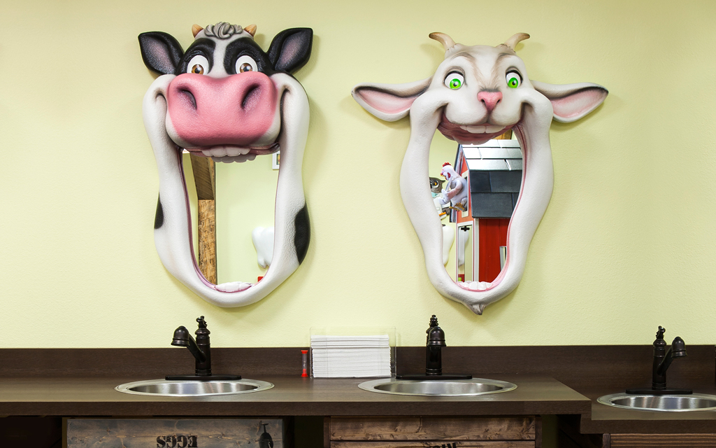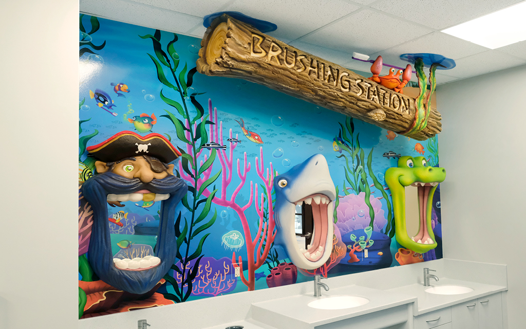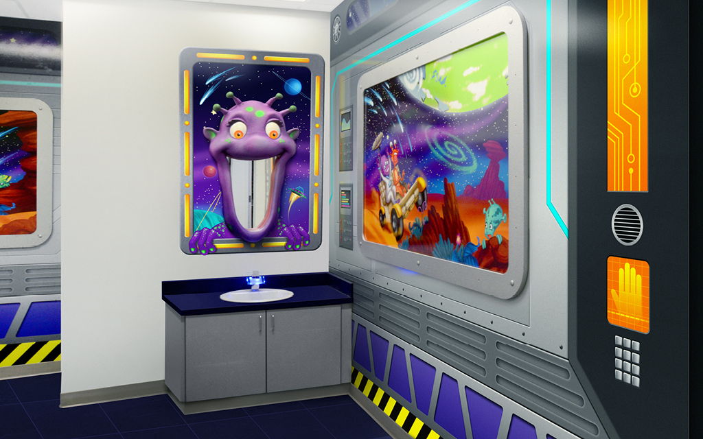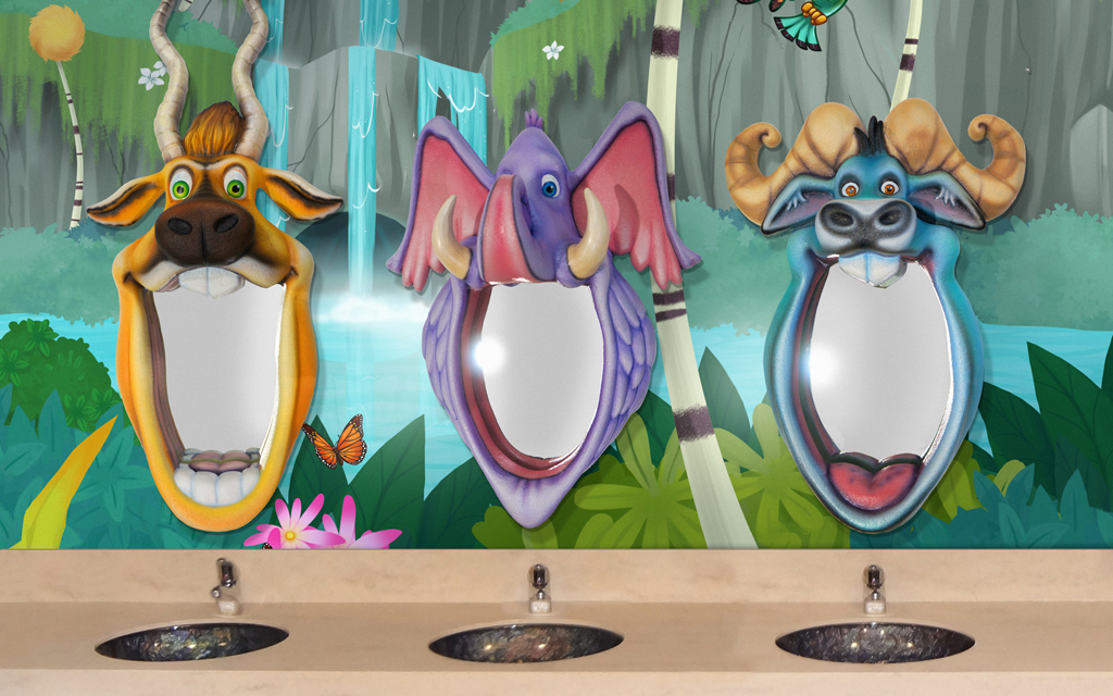 We know cleanliness in the workplace is important. That’s why we take special care to protectively coat all our 3D theming, ensuring that our characters retain their vibrant and colorful appearance even after enduring countless washes. Our printed murals are easy to wipe clean and won’t wear like painted murals, so don’t worry about a bit of toothpaste splatter.