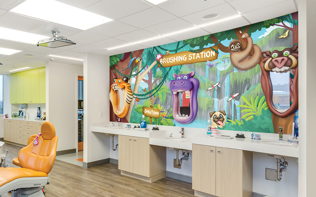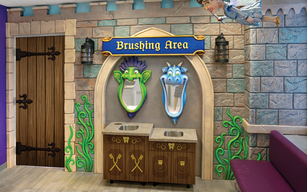Learning to brush is fun for kids with our themed brushing stations. You can choose from our existing Brushing Mirrors and Wall Murals from our IDS Essentials™ Collection or you can have us create a custom brushing station just for you. Contact us today to brighten smiles and promote healthy habits with our engaging brushing station!