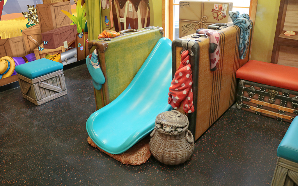 Encourage active play for kids and provide your young guests with the opportunity to expend their boundless energy during their visit with our entertaining themed slides. Instead of a plain structure, ours slides are integrated into a larger themed element, blending play functionality with immersive visual design. They create a memorable experience, encourage imaginative play, and can be customized to fit the branding of any zoo, museum, daycare, or pediatric clinic.