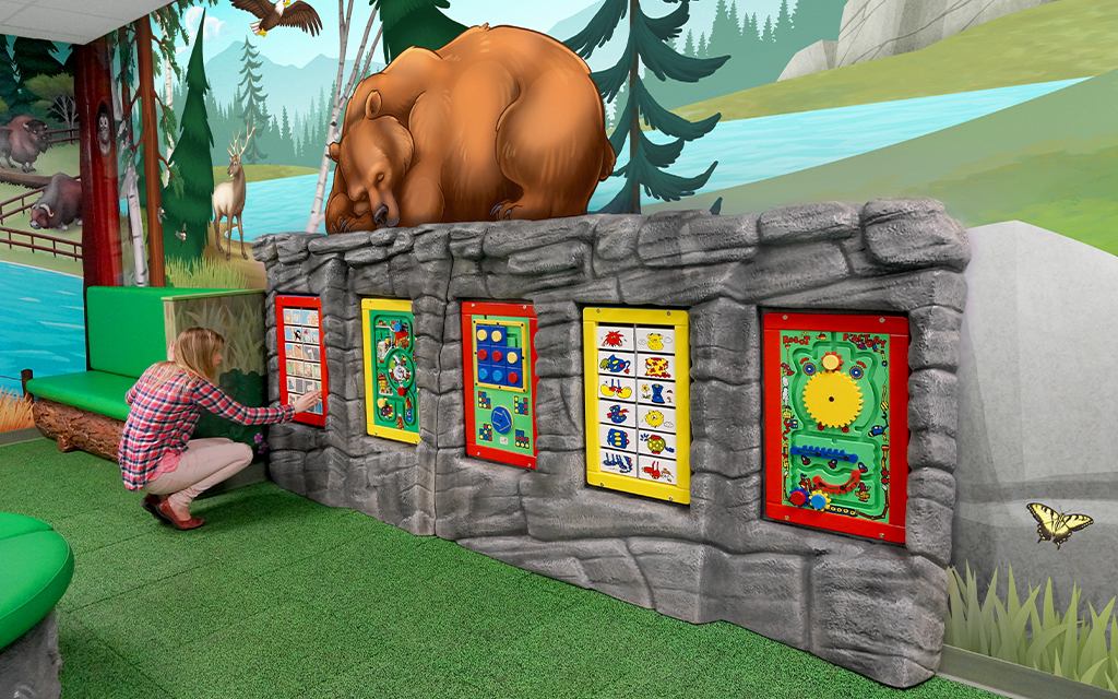 Play panels, like KeeBee play boards, are wall-mounted or freestanding activity boards designed to engage children with hands-on, interactive play. Spark joy and learning with our toddler play boards! Add play panels to your walls for some hands-on fun for your visitors. This is a great option for young children and can also be incorporated into your theming. Because they have no loose parts, they’re safe for public spaces, reduce mess, and work well in waiting areas, libraries, daycares, and medical offices where quiet, contained play is preferred.