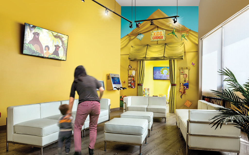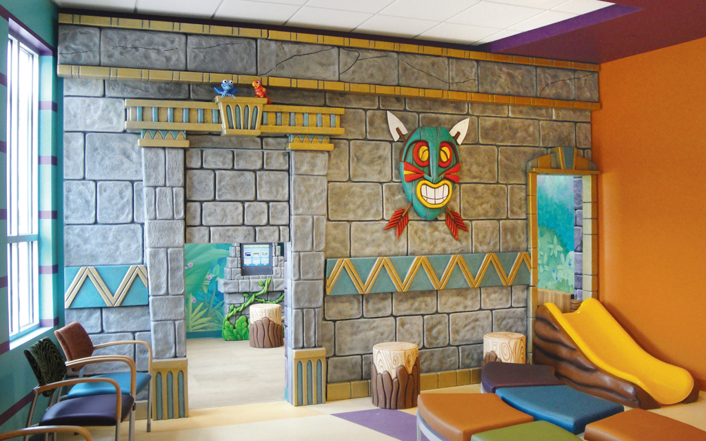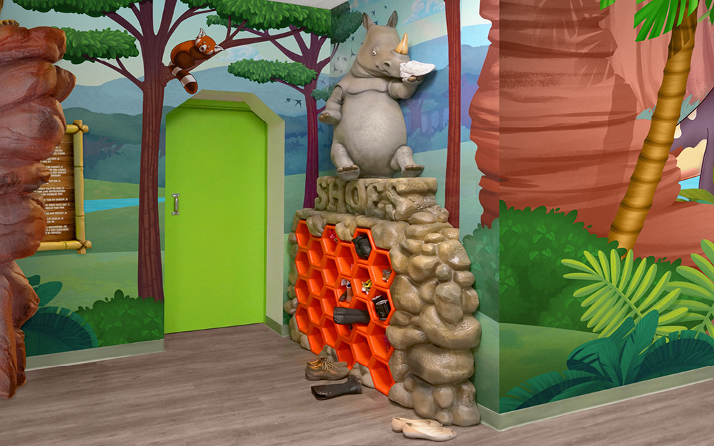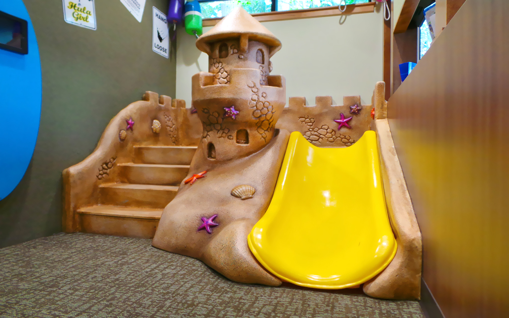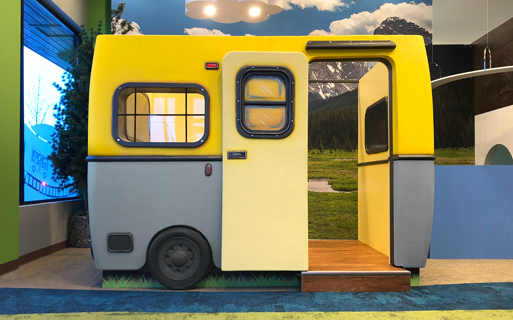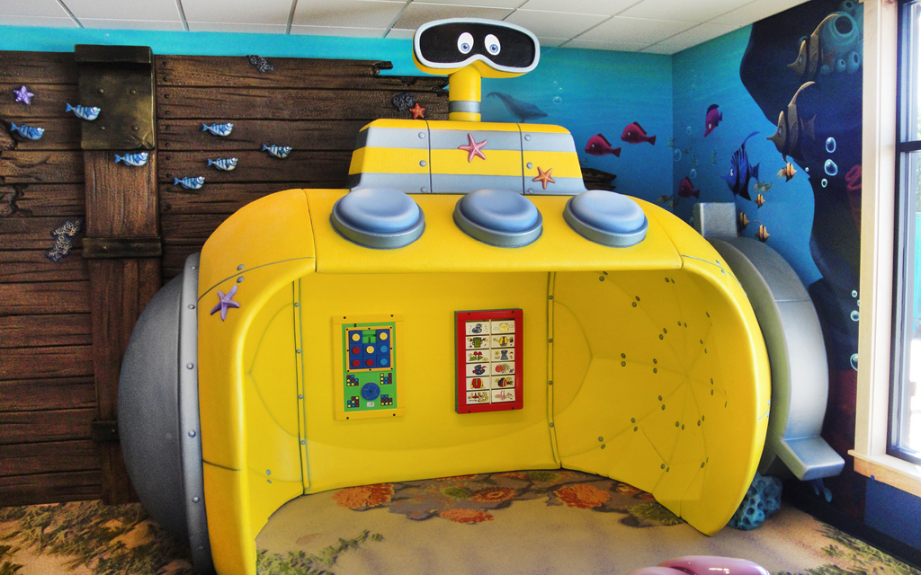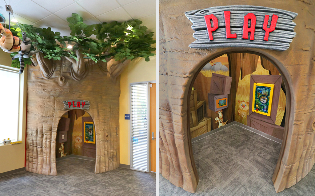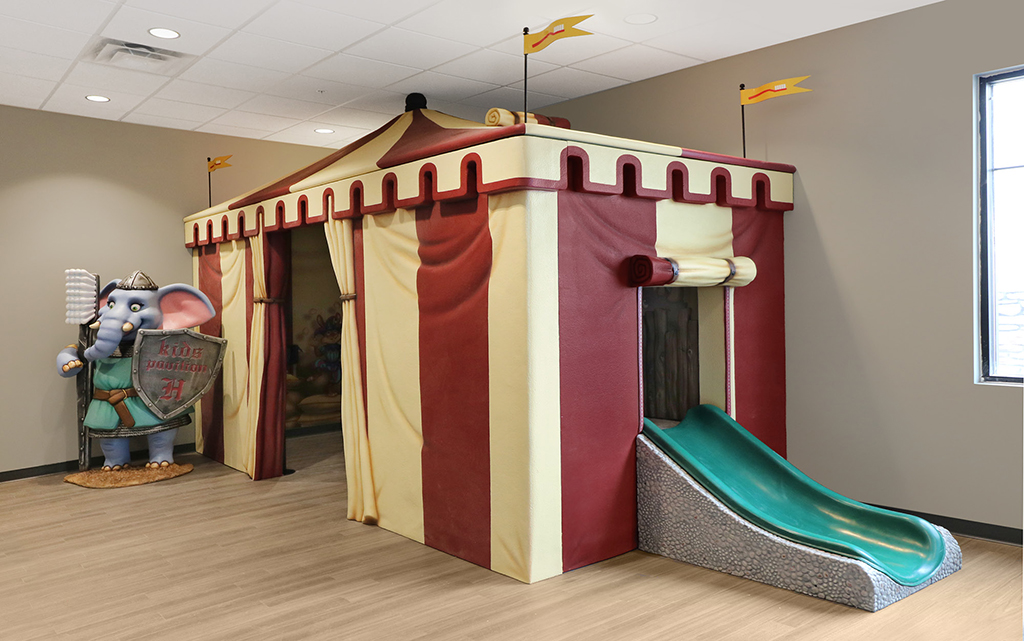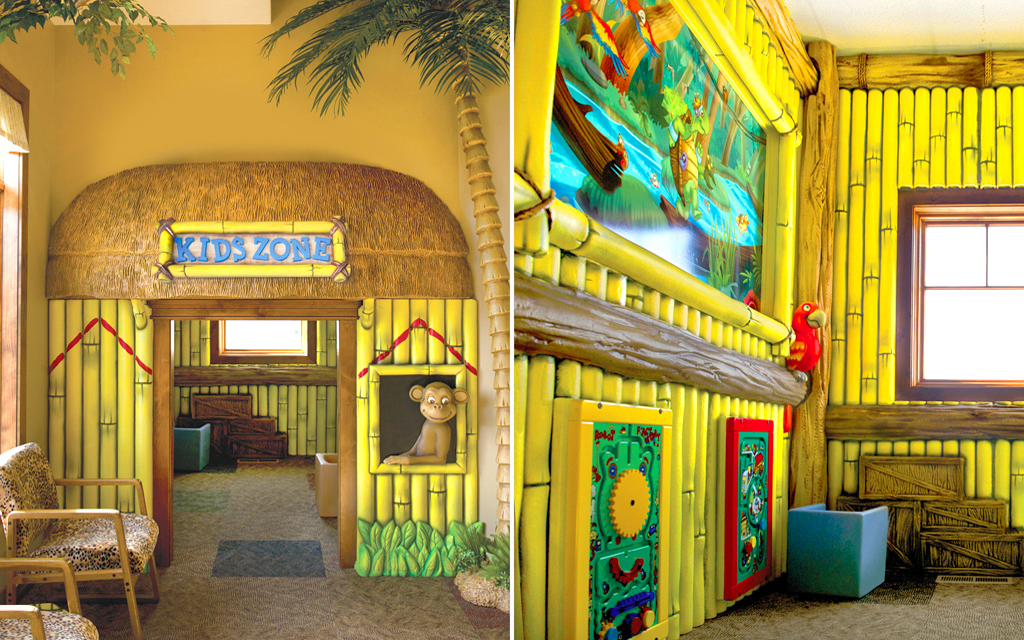 Every kid loves a good fort or playhouse. These themed play structures and divider walls create an area just for kids. A great example of how IDS encourages play while leaving the rest of the check-in, lobby, or waiting room area free for parents and adults to relax in.
