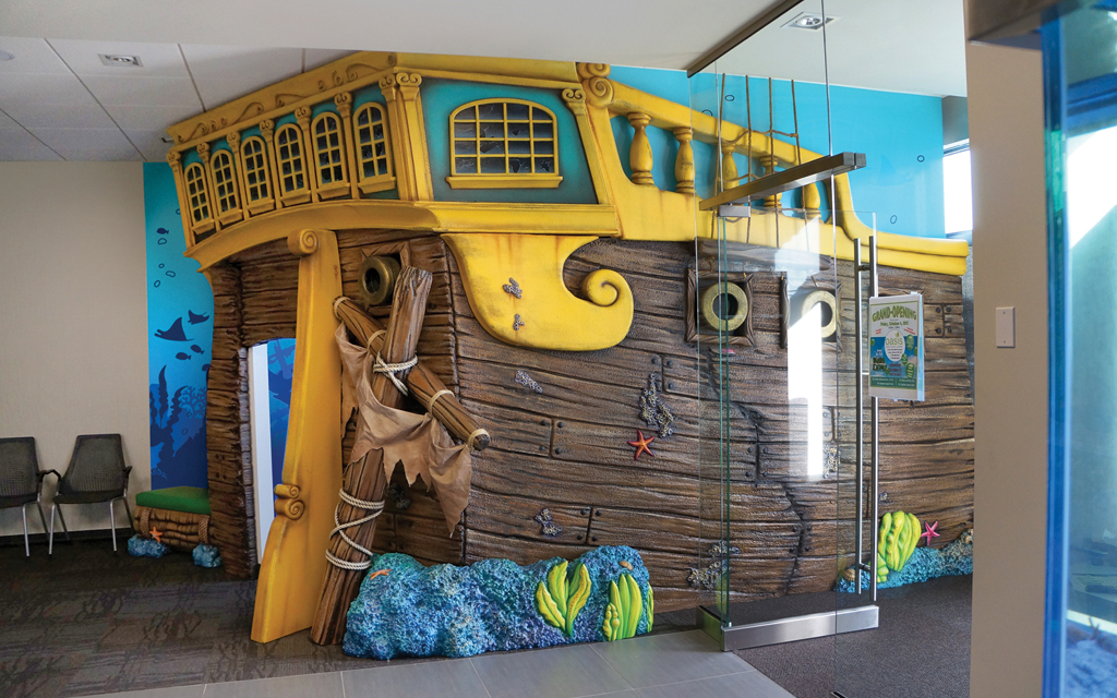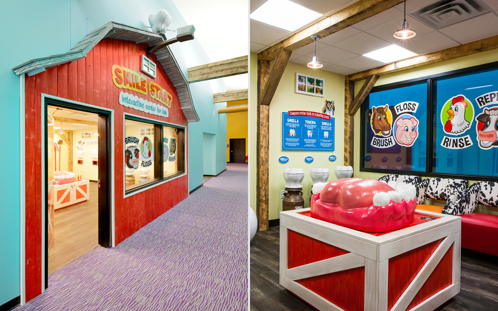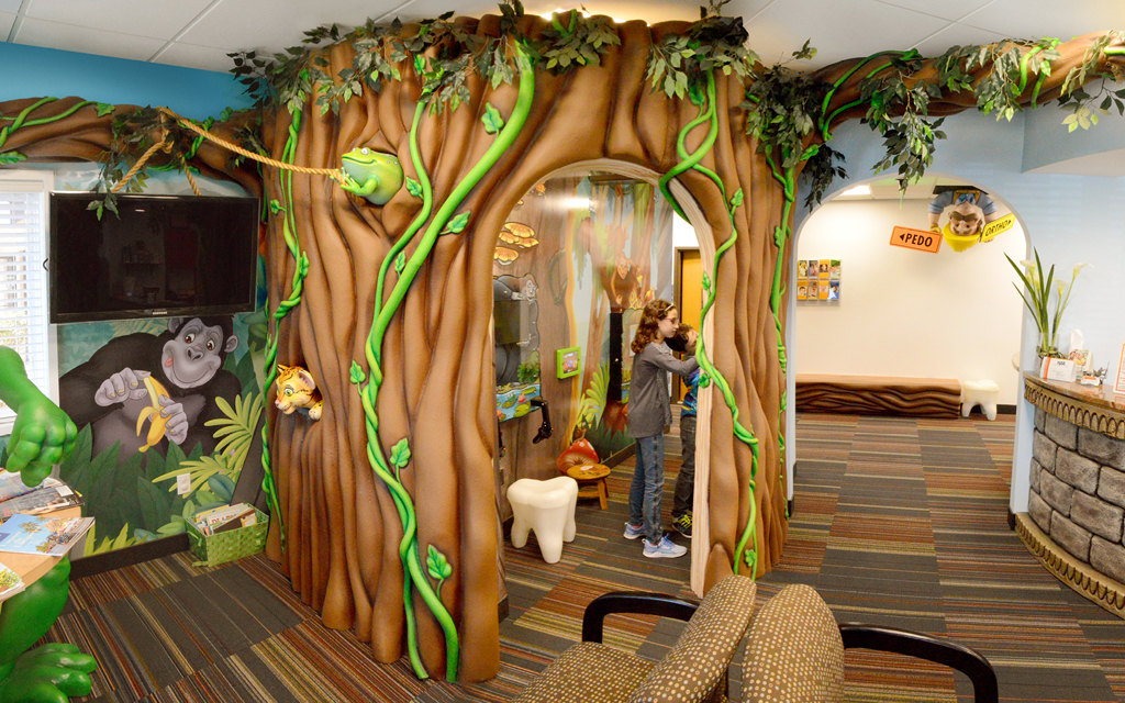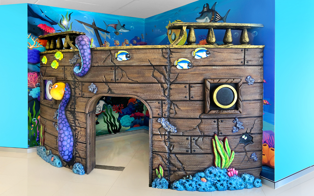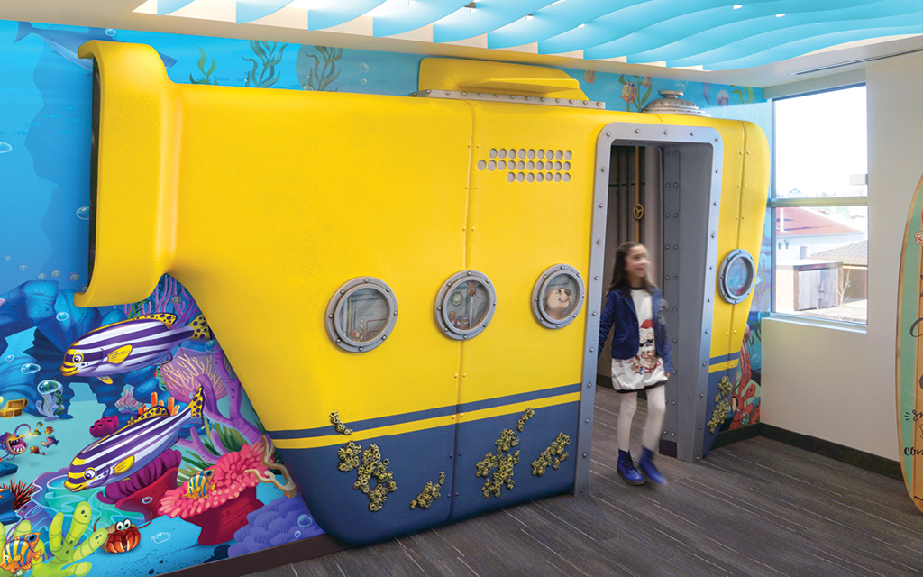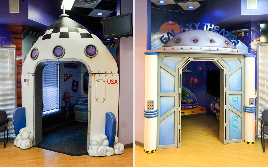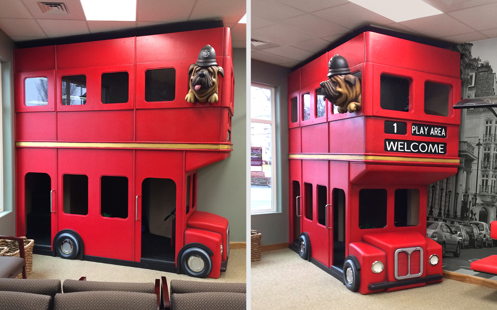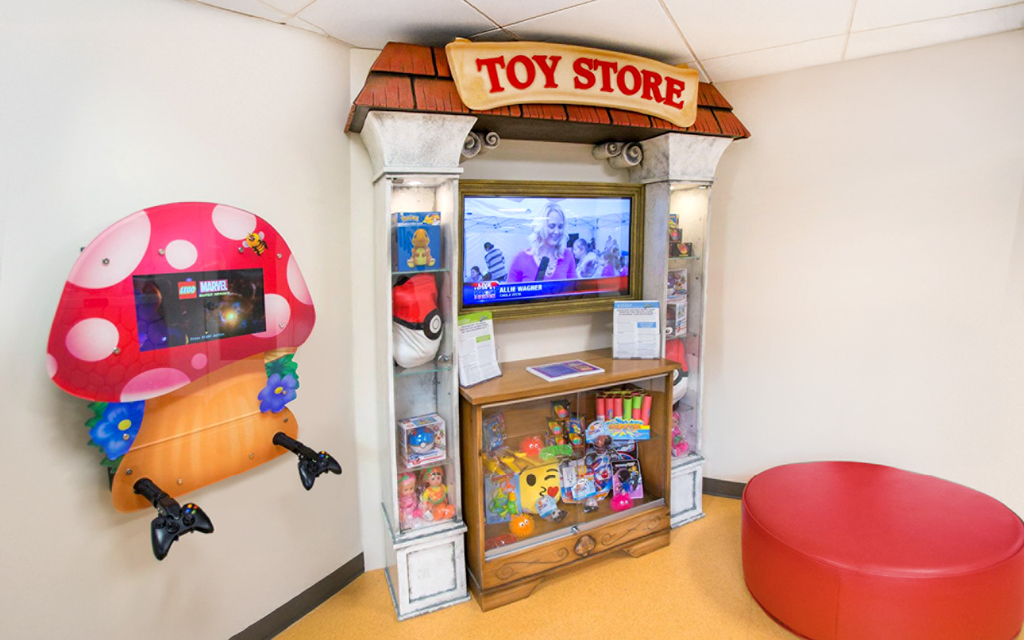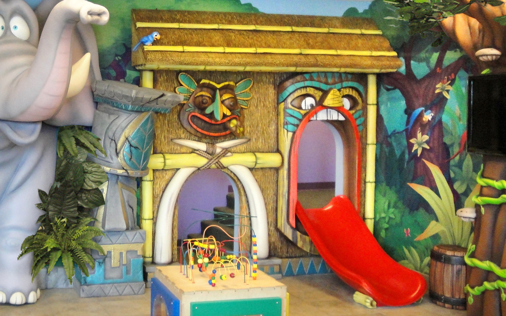 Every kid loves a good fort or playhouse. These themed play structures and divider walls create an area just for kids. A great example of how IDS encourages play while leaving the rest of the check-in, lobby, or waiting room area free for parents and adults to relax in.
