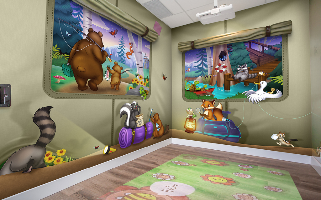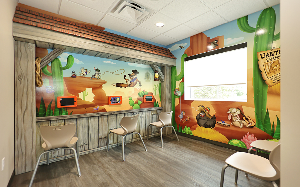 From built in video game walls to floor projected graphics, we have the tech to keep kids engaged.