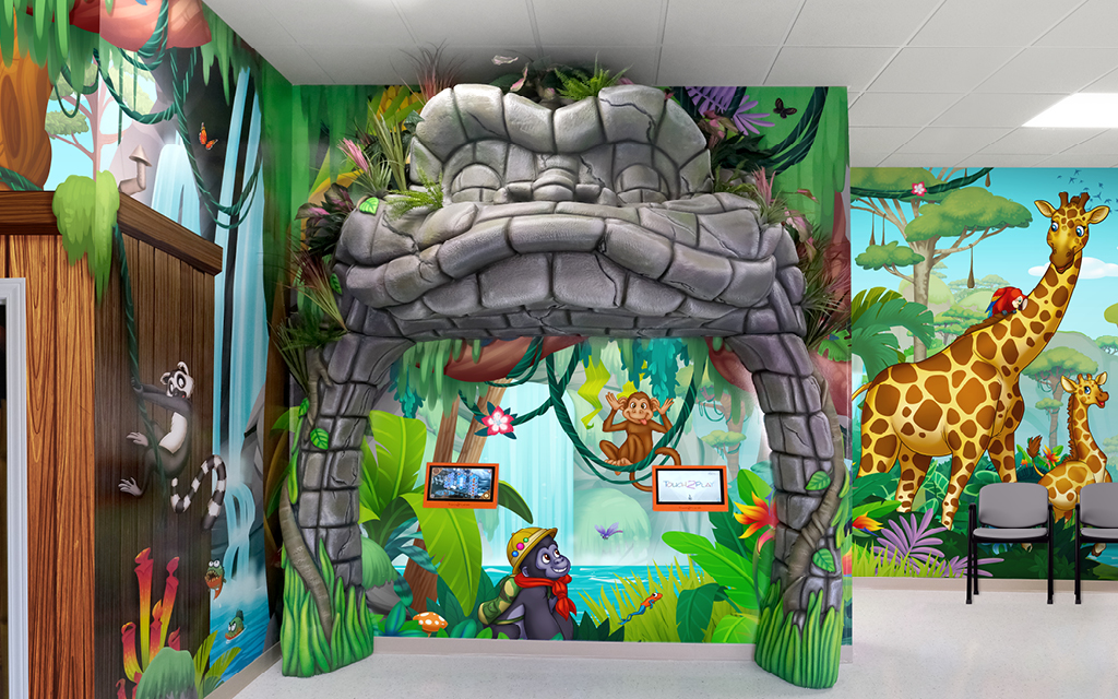 Turn wait time into game time! Get creative with your game stations by adding game consoles into sculptures of all shapes and sizes. Whether you want an entire sculpted wall, themed stand-alone towers, or gaming tablets on a mural backdrop, you can create an immersive gaming experience within your space.