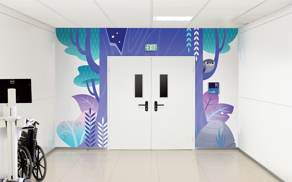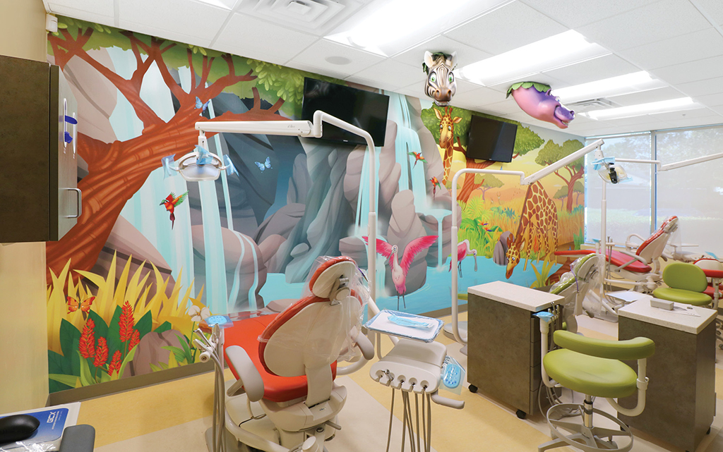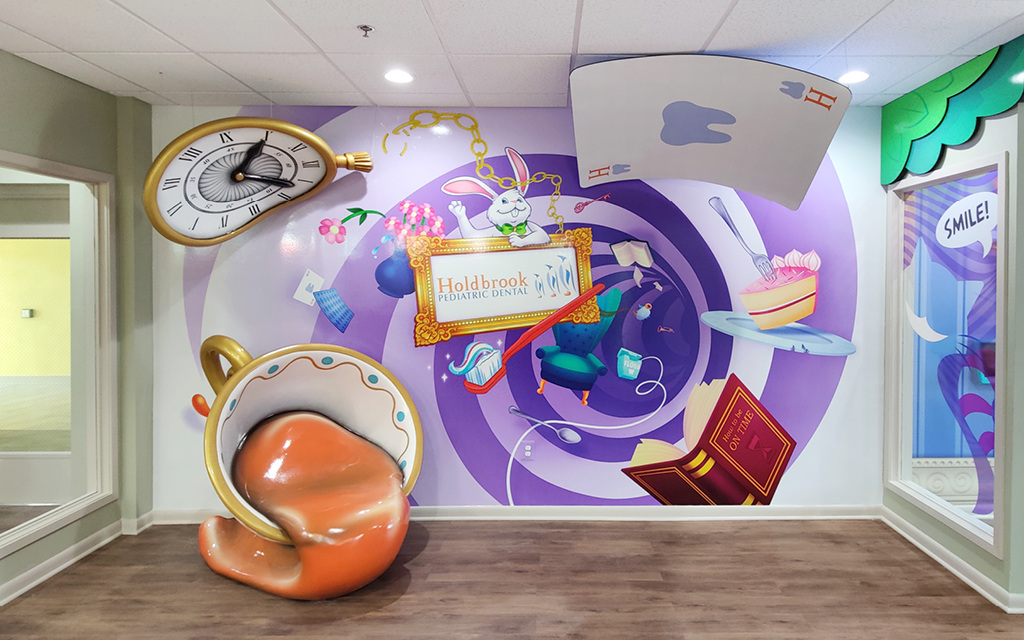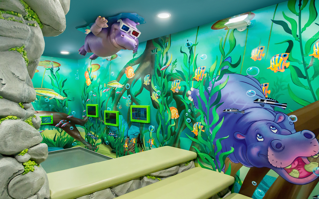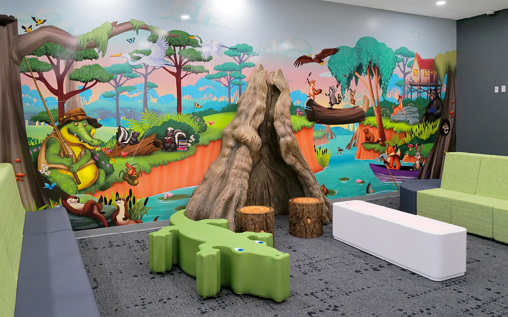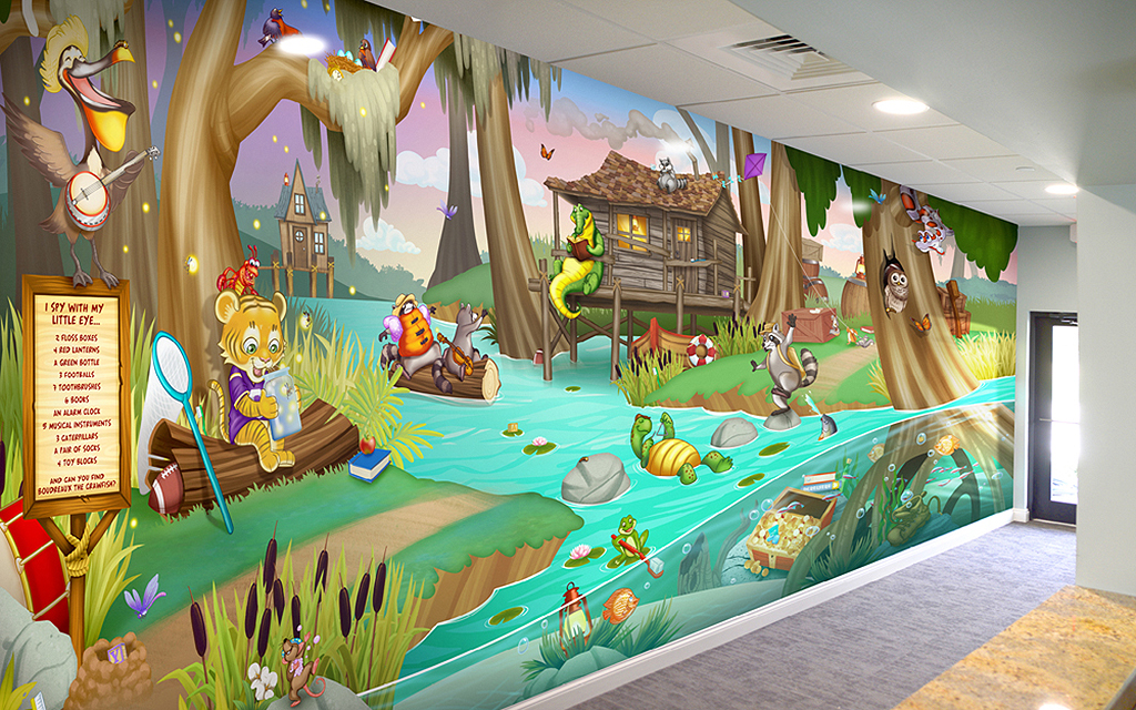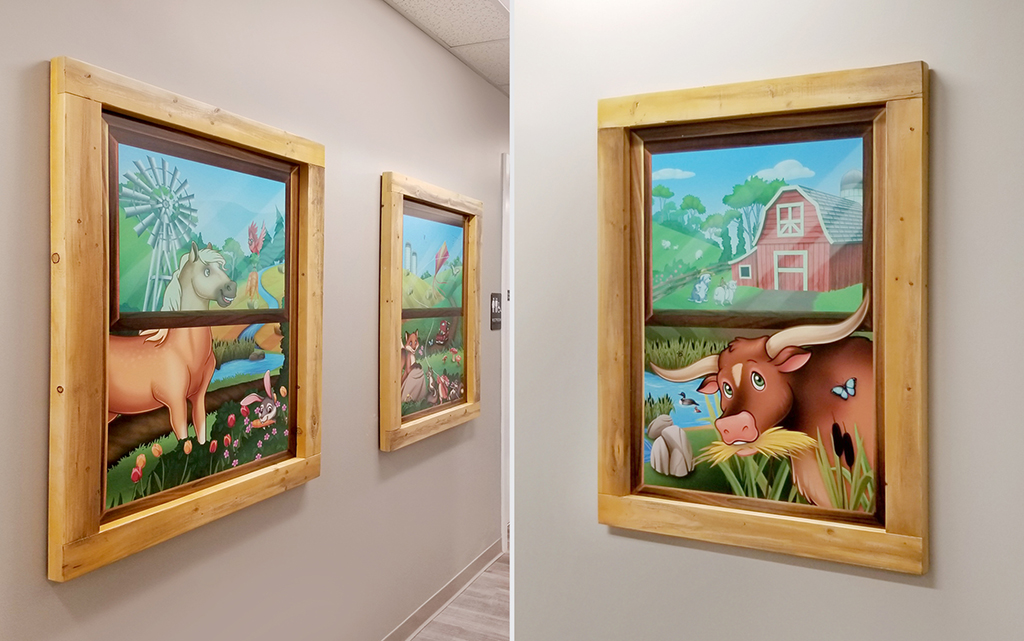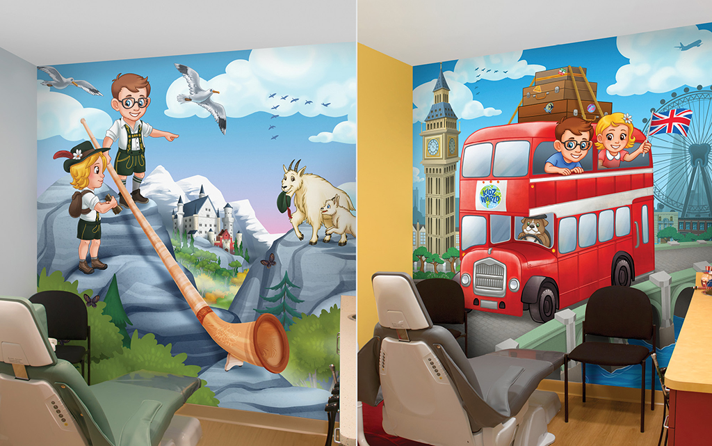 A wall mural is the perfect way to liven up any space and make it more family-friendly. Murals cover plain treatment and exam room walls and transform a room that may cause anxiety into a fun and immersive environment.