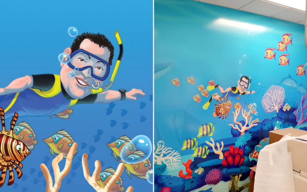 Add a touch of whimsy and personality to your environment. Contact us today to discuss how our talented artists can create unique caricatures for your murals.