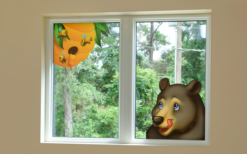 Office theming doesn’t have to stop when you reach a wall. Faux Window Murals give the impression of a themed world outside with friendly characters peering into your office. Open up your space with the illusion of a view!