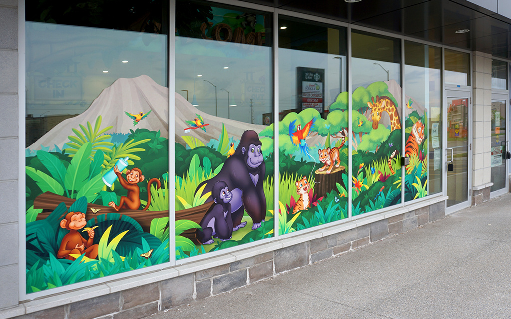 Transform your windows and doors into captivating works of art! Elevate your space with custom graphic murals that command attention and leave a lasting impression. Contact us today to explore how our talented team can bring your vision to life and enhance an often overlooked theming possibility.