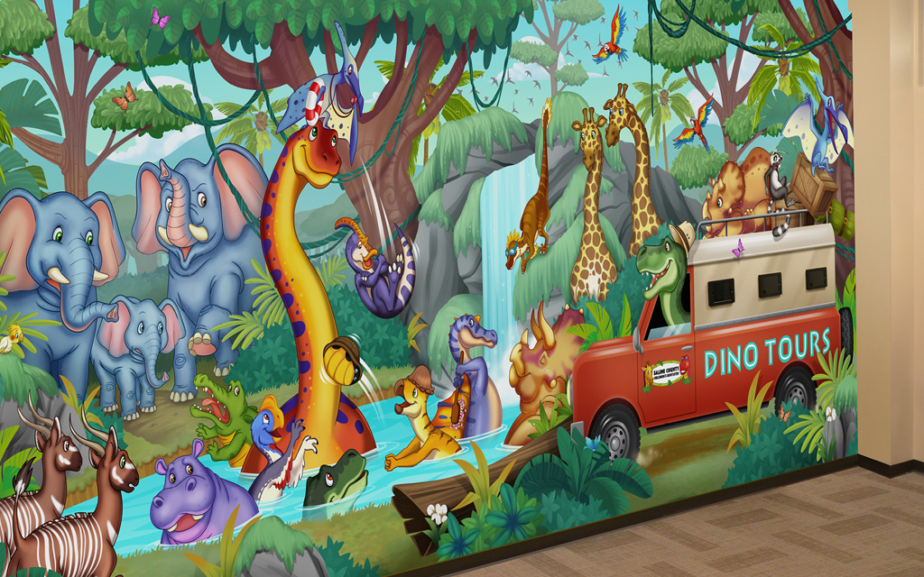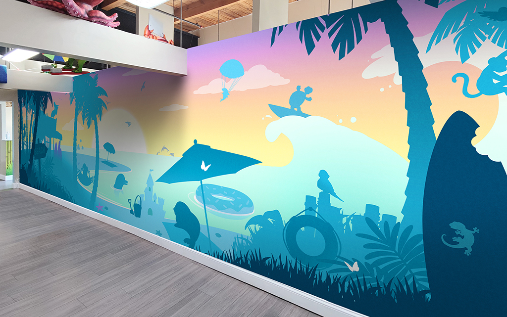 Our custom murals are illustrated by our talented team of artists who design around your existing office features. You’ll never have to worry about a light switch covering a character’s face! Want to add a personal touch? Include your company logo, add mascots, or create characters that match your theme, and IDS will bring your vision to life.