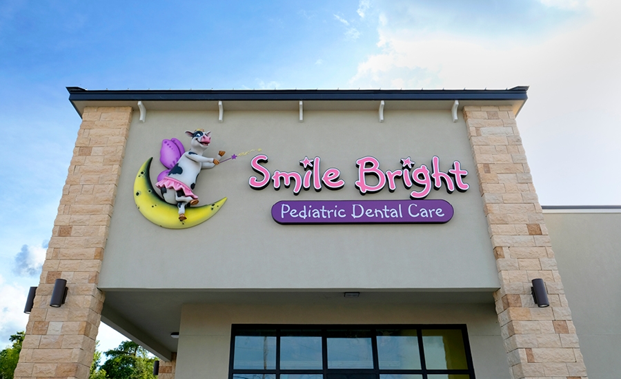 Outside, visitors are welcomed by the whimsical cow fairy included in the logo of the office as an exterior sign, making for an excellent and memorable landmark to attract patients! The use of cow mascots throughout the office was a play on the doctor’s name, Dr. Cao!