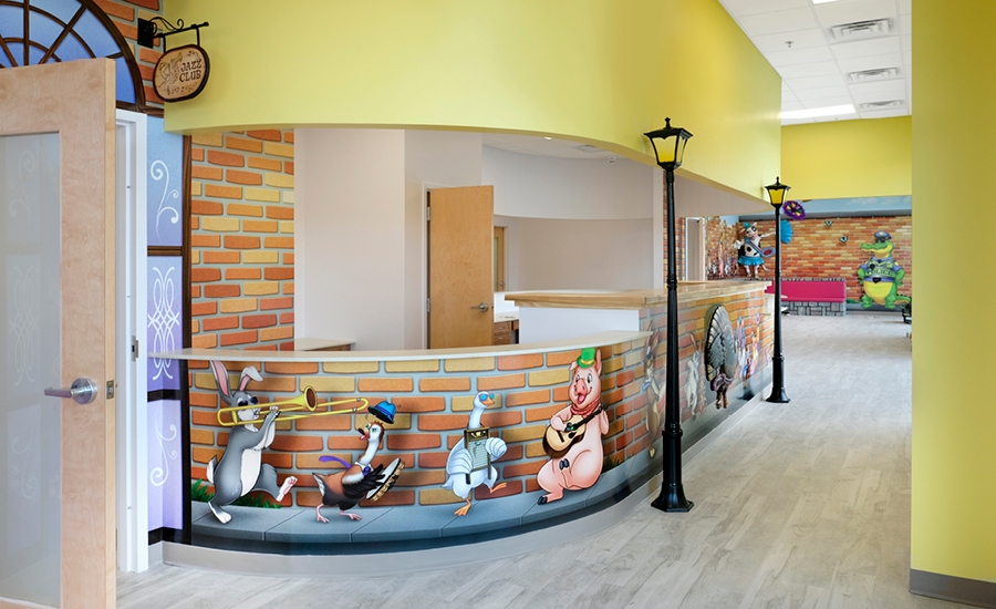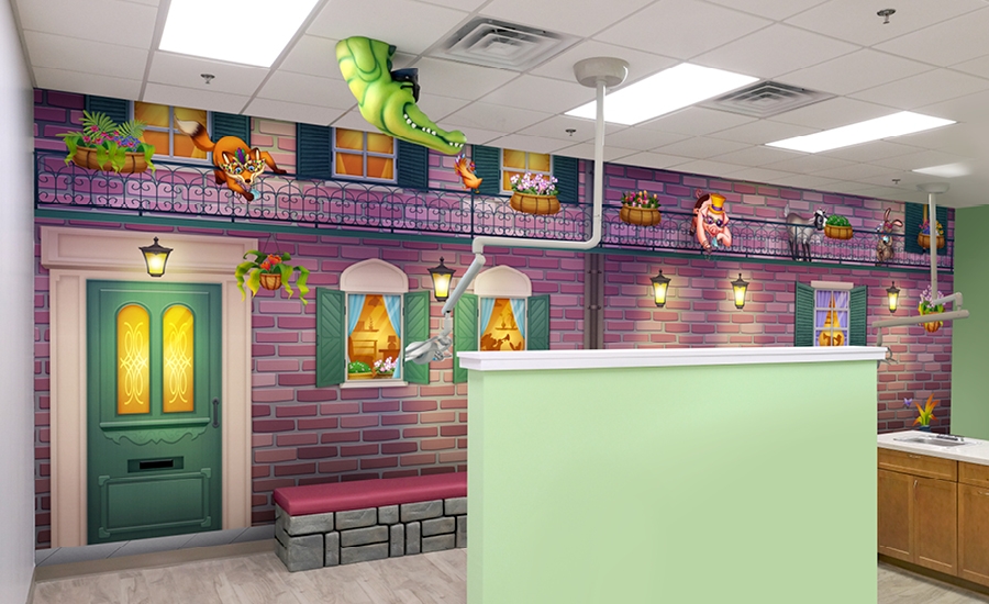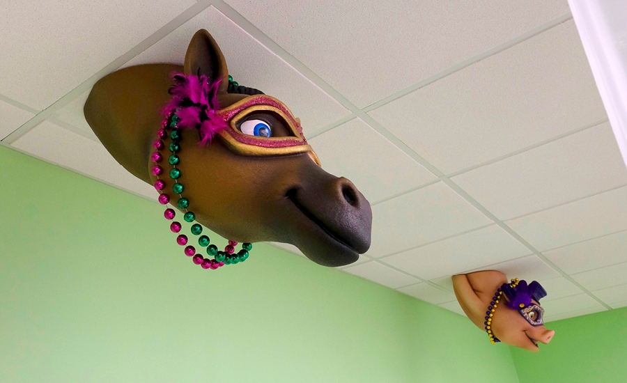 Join in on the festivities with all kinds of friendly animals in this musical Mardi Gras inspired office! The unique theme of this practice centers around a town full of adorable instrument-playing animals parading throughout the space, accompanied by plenty of fun photo-ops and entertaining characters.