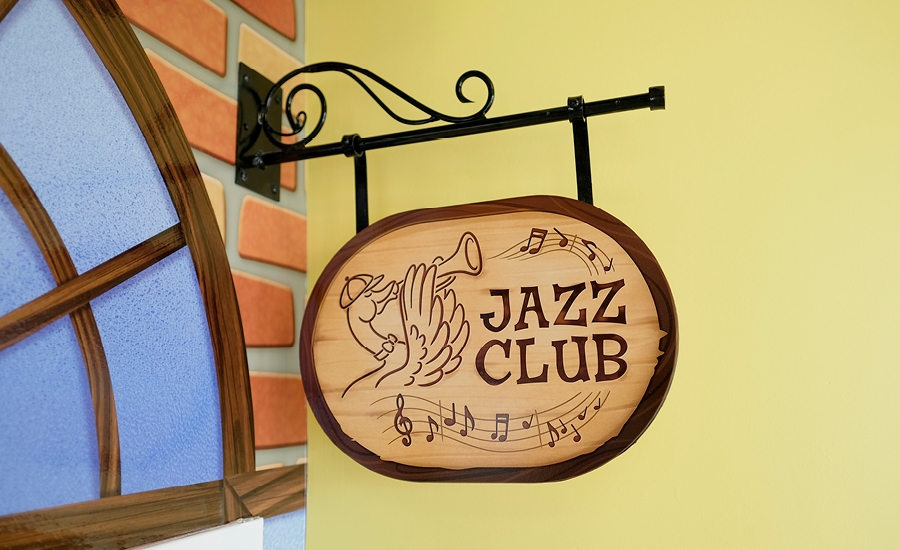 Above the entrance, some curious furry critters are looking on the parade while tossing down toothbrushes and floss in a specially made mini-balcony crafted with real metal. The reception itself is also outfitted with some vintage style street lamps.