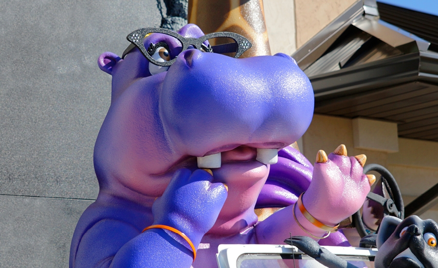 A group of jungle friends sit atop a tree to watch movies in the theater area. They even have a bag of popcorn! 3D sculptures and 2D murals combine to make the perfect theater screen.