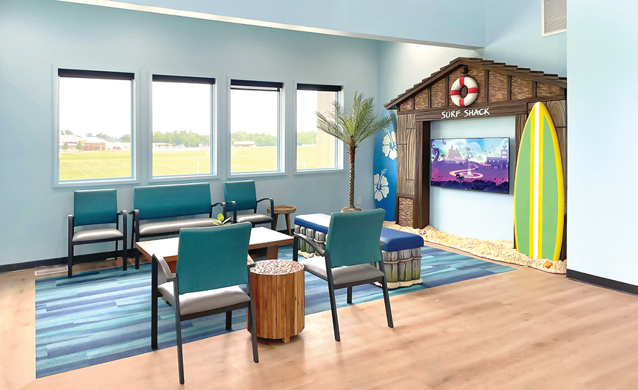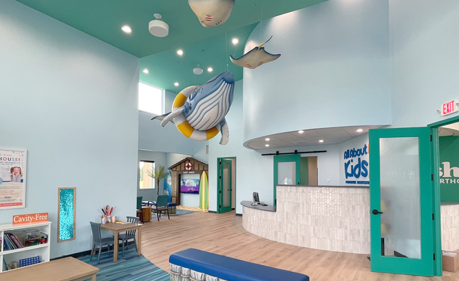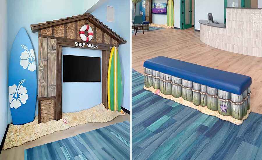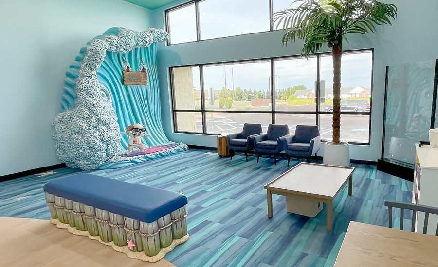 Step into this ocean-and-beach themed dental office reception area and you’re basically on vacation… minus the sunburn!