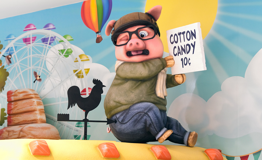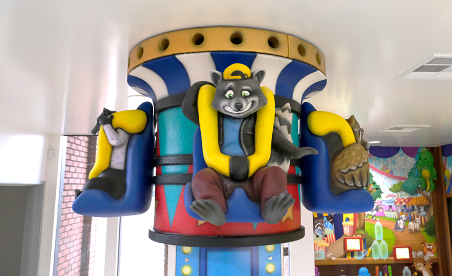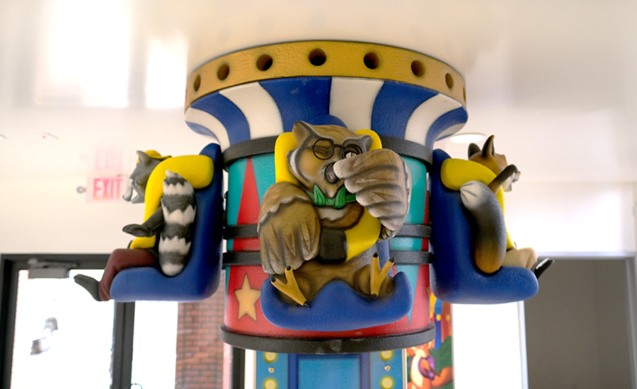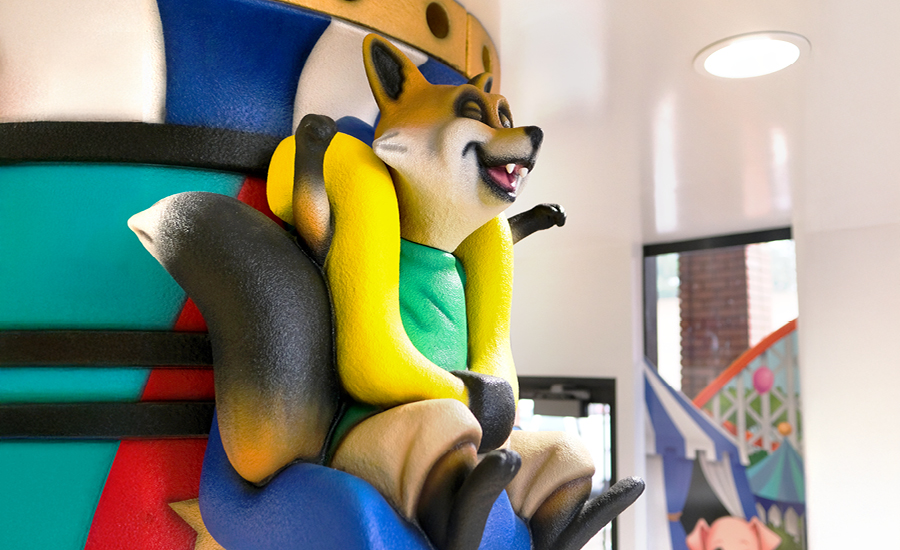 Each room becomes an immersive setting where the mascots take center stage. From showing off their talents at a fairground stage to trying their luck at midway games, the storytelling keeps kids entertained throughout their visit.