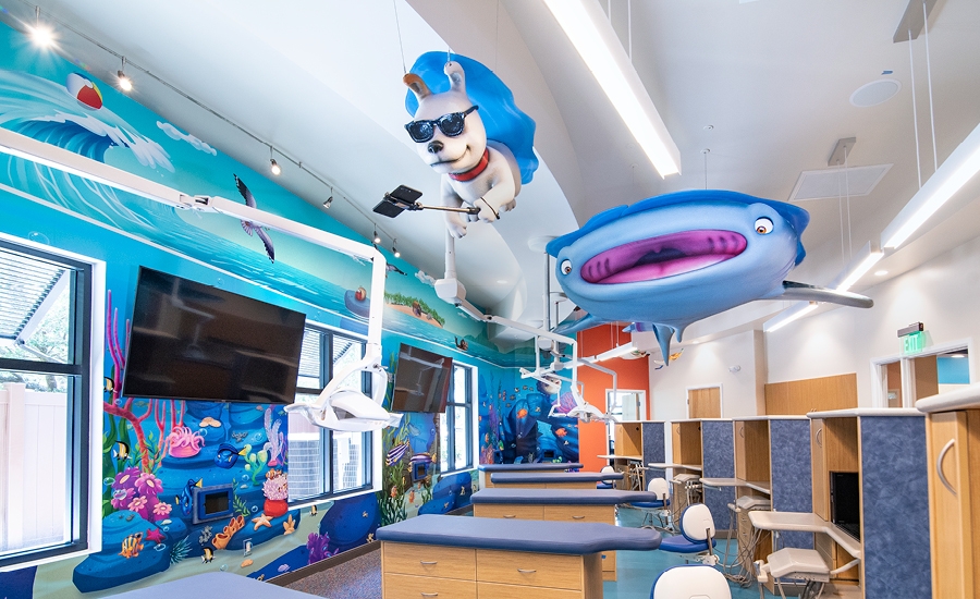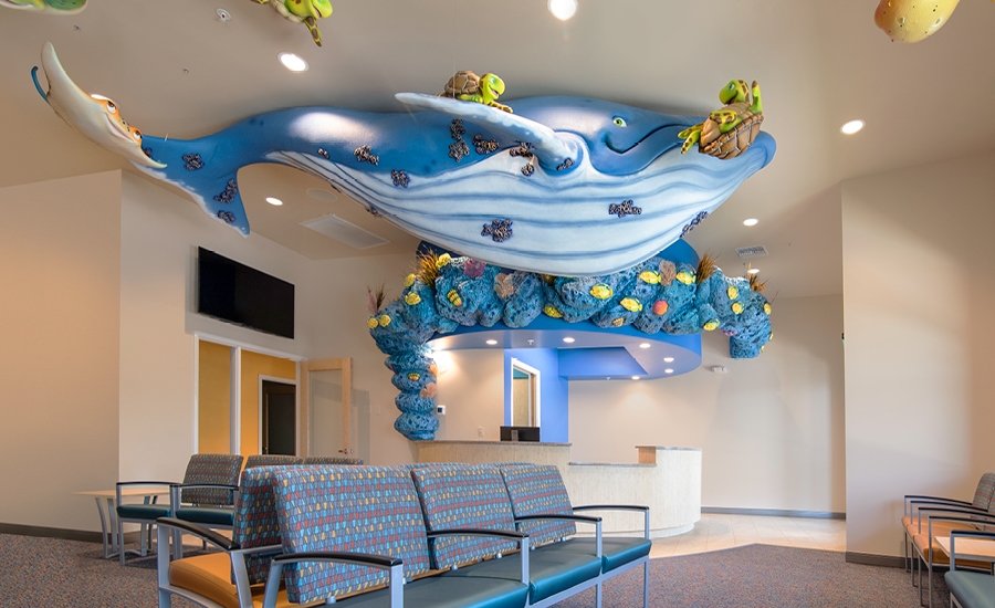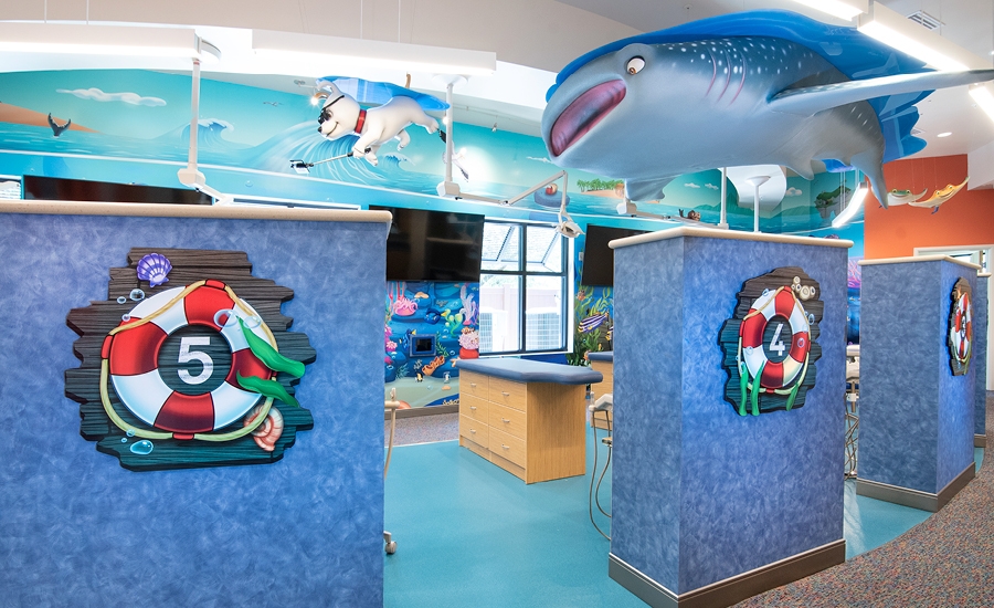 In the open bay Shades is there again as well as a friendly whale shark and more murals and decal graphics that carry the theme into the treatment area for patients to enjoy.