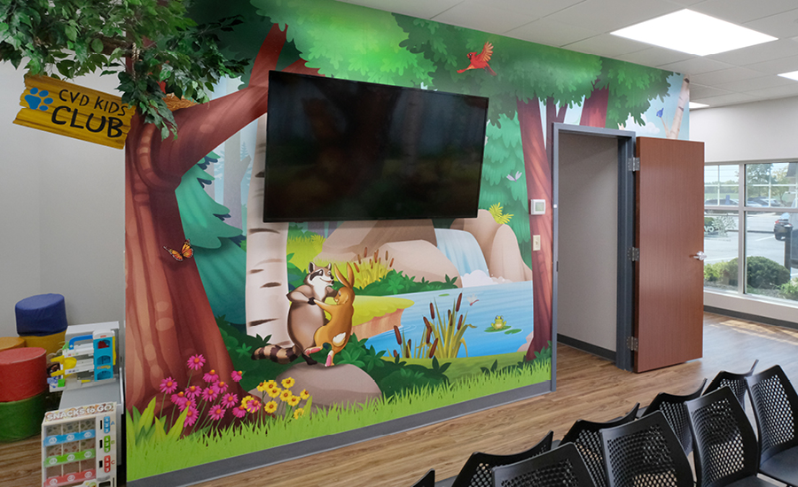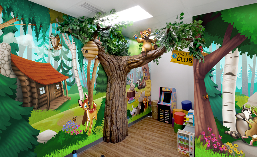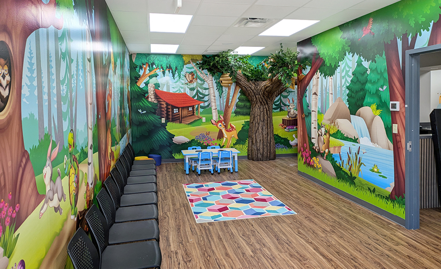 This woodland-themed corner transforms waiting time into an adventure, giving children a playful and calming experience as they interact with the charming animals and natural scenery.