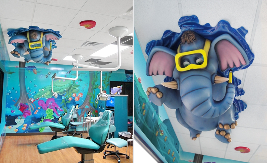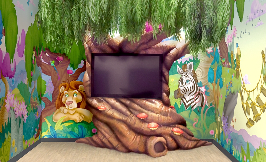 After working with IDS to create a whimsical jungle theme for their first dental practice, this client was excited to extend that magical theme for their new second location. Our muralists loved adding touches of the original artwork to the new one!