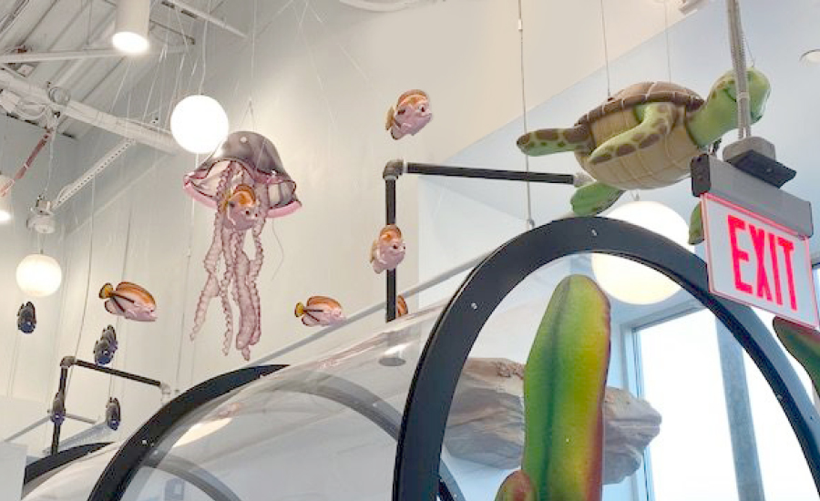 When guests walk in to the lobby, they will instantly be greeted by a giant humpback whale smiling down. Giant whales are a popular creation in the Imagination Design Studios portfolio. They are a magnificent addition to any space and wow our clients with their size and impact.