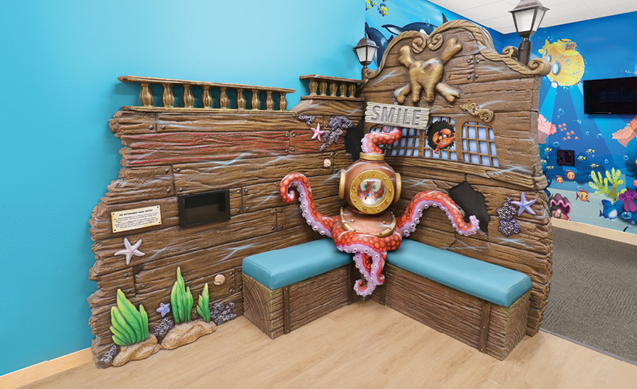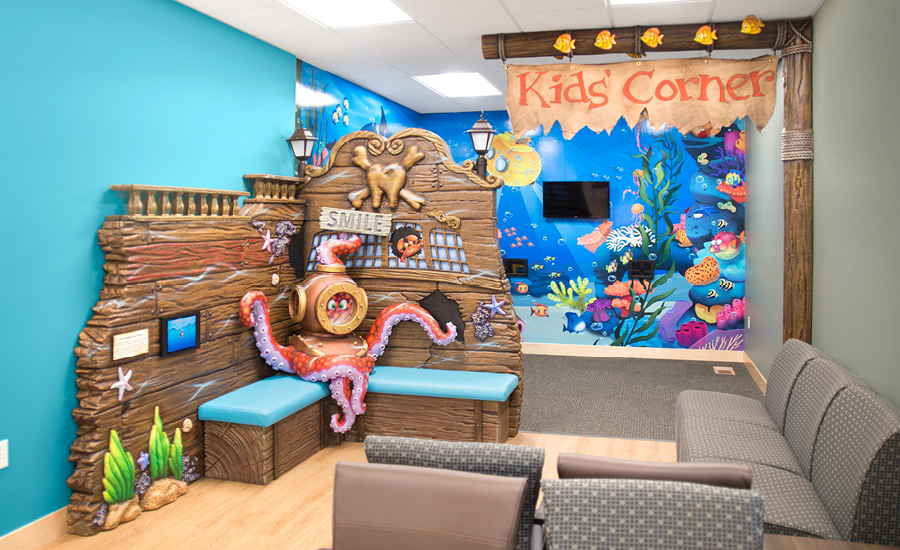 ‘Water’ you waiting for? Come dive into this underwater themed office! Kids will find fun and adventure above the waves as well as under the water at this pediatric dental office.
