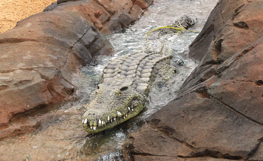 The course itself is made up of 18 holes, each with its own unique animal and challenges. The animals interact with the course itself. A big yawning hippo seems to be swimming within the golf hole. The intimidating silver back gorilla watches over his golf hole. Continuing on, you come to a hole with shark fins poking out of the water, creating exciting obstacles for players to work around.