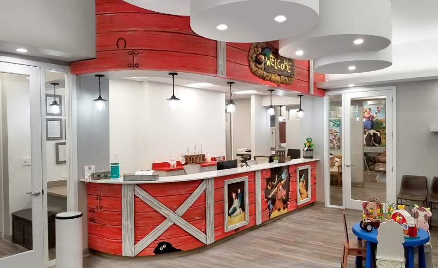 Visitors will get a trip to the peaceful countryside in this phenomenal farm themed pediatric practice.