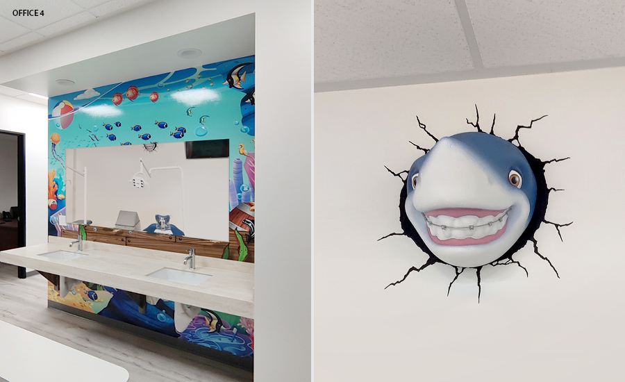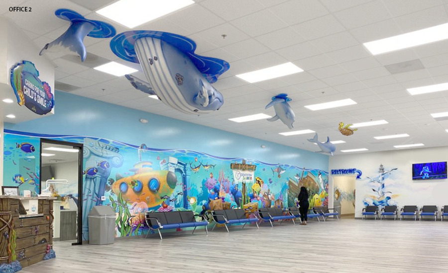 Theming has been going swimmingly at 5 locations of this group orthodontic and pediatric dental practice, with offices offering exceptional care (and exceptional decor) to clients across California.