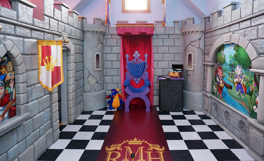 The Ronald McDonald House Magic Room is a place where children staying at the House can celebrate a successful surgery, milestone, or even a special event. Imagination Design Studios had the honour of building this Magic Room to look like a playful medieval castle. A kind dragon flies overhead, while wall murals give children room to play with their new animal friends.