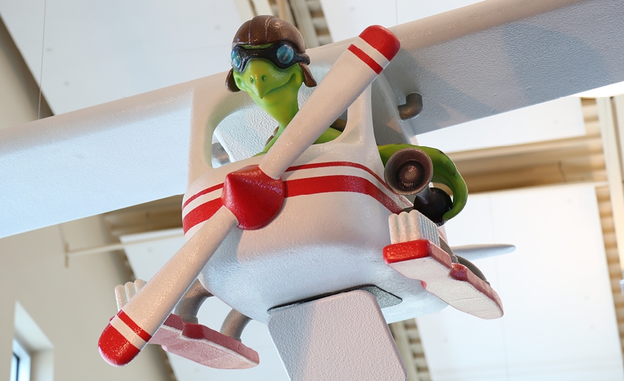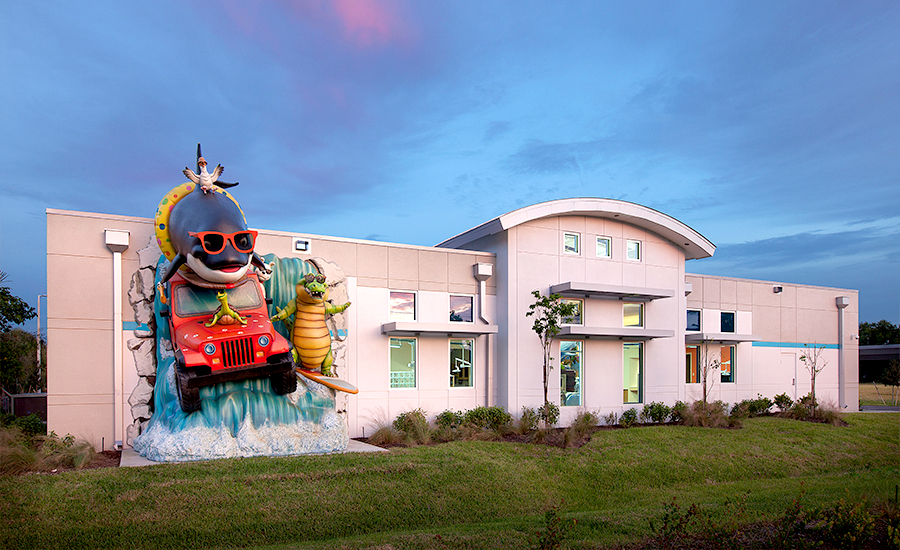 They won’t be able to miss the building either, with the giant Landmark sculpture of a Jeep-driving orca whale and his buddies on the side of the building to draw attention.