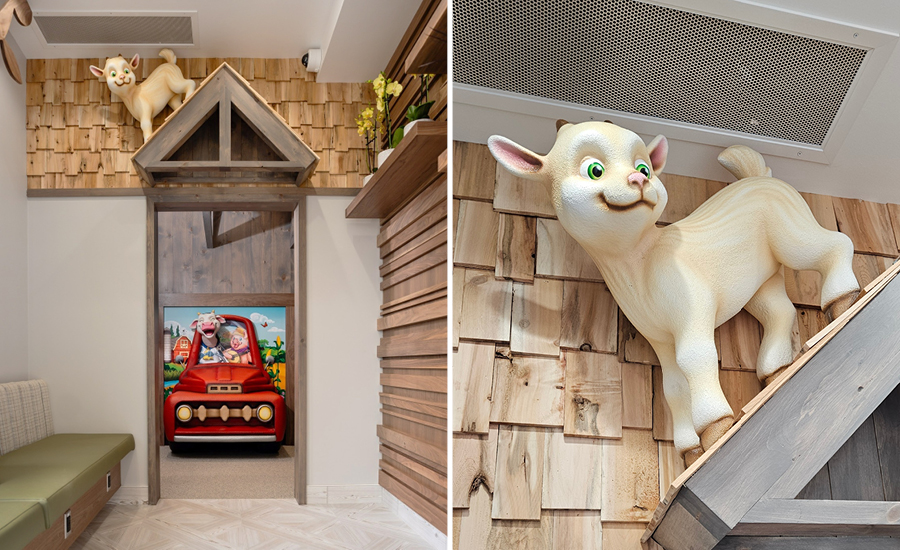 This private farm-themed playroom transforms a routine dental visit into a countryside adventure filled with charm, music, and imagination. IDS combined whimsical sculptures, interactive play, and warm finishes to create a space where young patients feel excited and at ease.