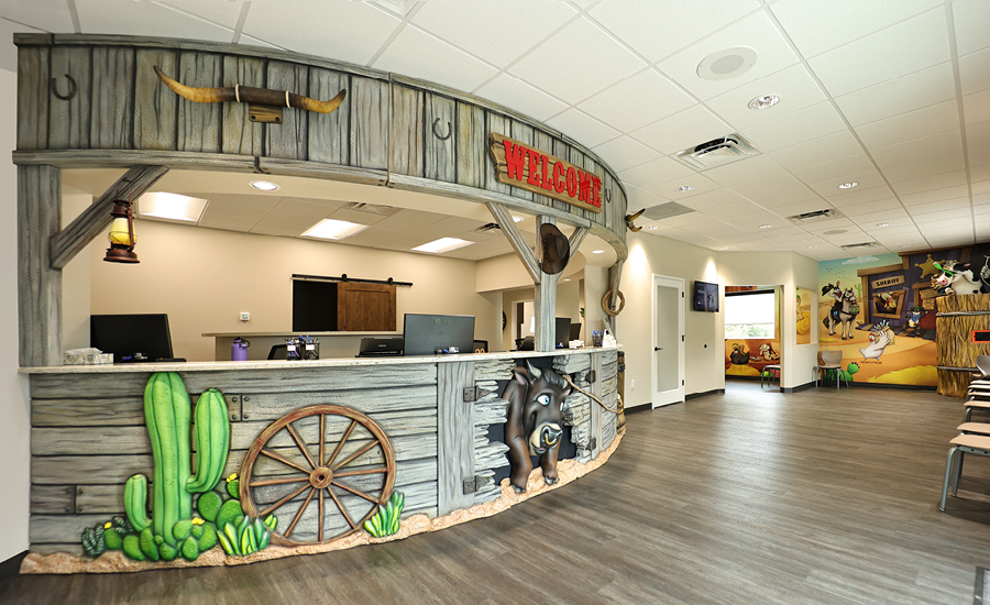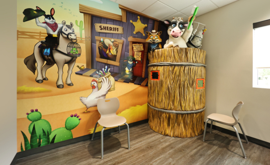 Saddle up your horses and pack your finest lasso, we are headed to the wild west. From doorstep to treatment chair, children will feel as though they have headed on an adventure to wrangle bandits in this western themed pediatric dental office.