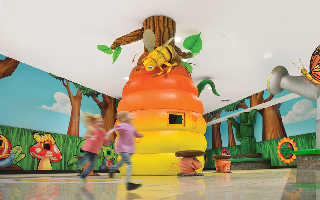 WHY IT WORKS: A themed play area inside a former store can act as a destination for families, increasing dwell time and encouraging parents to explore nearby stores.